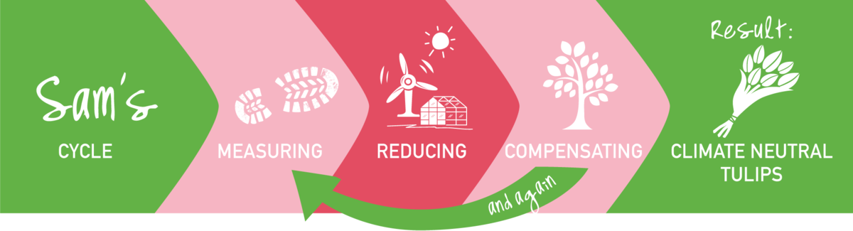 Knowledge is power. Sam continuously measures the amount of greenhouse gases (CO2) released during the production of his tulips. The smaller the carbon emission, the better you are being for the climate. By measuring this he discovers where the production process – from bulb to tulip – can be improved.
